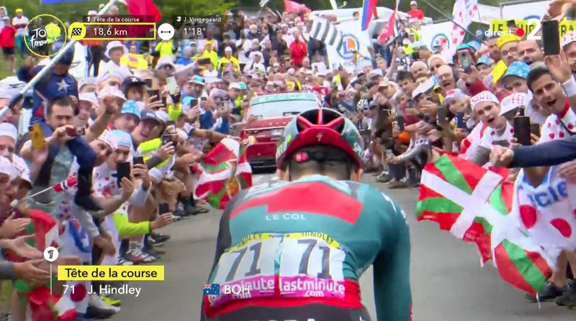 선두가 누구져? 오널은 이상하게 단독 선두... 빽남바 216번에 토탈/라뚜르... 무전에서 그러잔슴? 글쵸~ 선두에 한 뭐 서너명, 5명쯤은 붙어 줘야져~ 뒤쪽서 슬~ 슬~ 눈치 보는 우노엑스~ 거보삼~ 눈치만 보다 접촉사고 발생... 이건 더더구나 시야각이 좁아서 "방어운전" 탁월해야혀~ 말그대로 그걸 "칼치기"라구 하잔슴? 공간만 뵈면 빨리 빠져 나가야 되는거임~ 트랙에 빽남바 83번이 충돌 난건가여? 옷이 저래놔서... 구분이 안되자너? https://www.letour.fr/en/rider/83/lidl-trek/skjelmose-mattias-jensen 맞네여~ 얘자너? 애만 왜 또 옷을 저런걸... 옷두 잘 입어야해여~ 이게 죄다 옷 벗겨 먹자구 하는 장사라... 그래서 (어뜬 팀 유니폼에 젤루 깔쌈하냐?) 투표두 걸리구 그랬잔슴? 작년에 비비호텔이 옷은 젤루 잘 챙겨 입었든... 😝😛😜 한눈에 팍~ 튀는 옷이 젤루 조쳐~ 그래서 그게 형광색 아녀? 노란색두 아니구 형광색... 저기 인터막세 보삼~ 형광색 아녀? 로또 치구 나가나여? 로또/우노/바렌... 그런 순서... 요번엔 윰보/이지/수달... 그런순서... 오널은 선수 노조 협회에서 힘을 못쓰는건가여? 죄다 선두 다툼이 치열한... 사실 뭐 오널은 또 150키로 정도 빡엔 안되니깐 먼거리는 아니져... 높은 산악지대일뿐 거리상으론 뭐 먼거리는 아니니깐... 반아트가 선두를 잡으면서 속도 구간에서두 점수를 따보자~ 그건가여? 사실 엊그제부터 필리펜에 쫀심을 구긴 반아트가 회심의 카운타 펀치를 오널 또 날리지는 두고 봐야져~ 점수상 되나? 지금 녹색옷 1등이 필리슨이가... 150점... 반아트는 60이네여~ 그러니 좀 신경을 써서 선두를 잡아보자~ 그런 계산 같애여~ 점수 구간 1등이면 20점 주나? 그쯤 되겠져~ 그거라두 따보자~ 그런 작전인듯... 이완이가 좀 해보는게 낫잔나? 암튼 녹색옷은 150점이라... 너무 벌어져서 오널은 필리슨이가 득점에 신경 안쓰구 놀아두 뭐 점수상 따라갈 수가 없어여~ 어제까지만 해두 빅또라페... 80점 빡엔 안되자너~ 다른 그 어떤 선수가 1등 해봐야 녹색옷은 점수상 되덜 안해여~